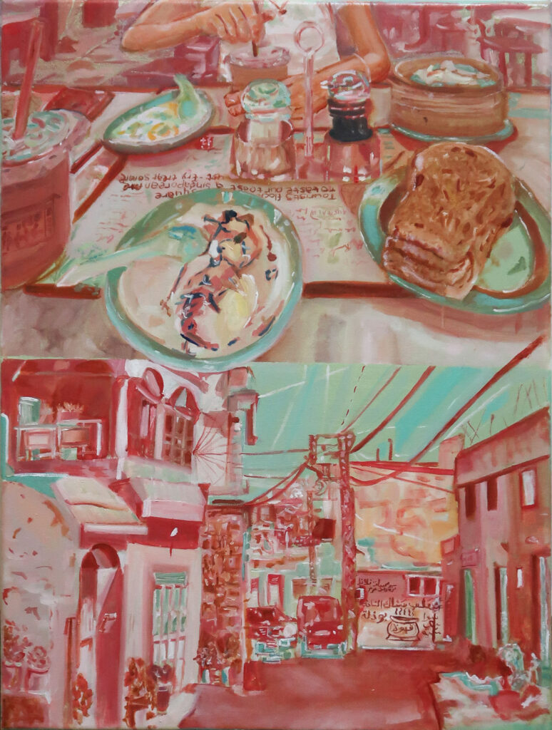 For my dear friend Iman, who would mull with me on the same conversations again and again, for our yearning of home, to love and be loved. A scene of her father’s hometown of Lebanon, a scene of our breakfast routines at Ya Kun, before she moved away from her hometown, Singapore.