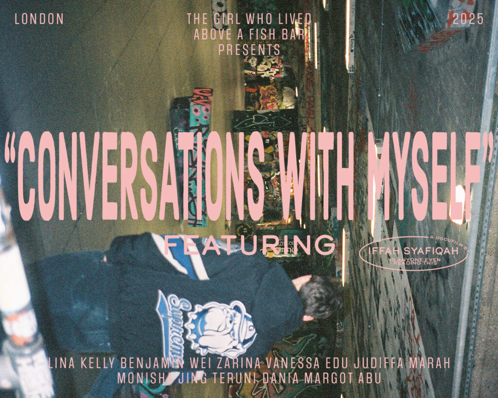 “Conversations with Myself” entails friends talking to each other, me talking to myself, me talking to my friends. My ending quote is “i am, because you.”